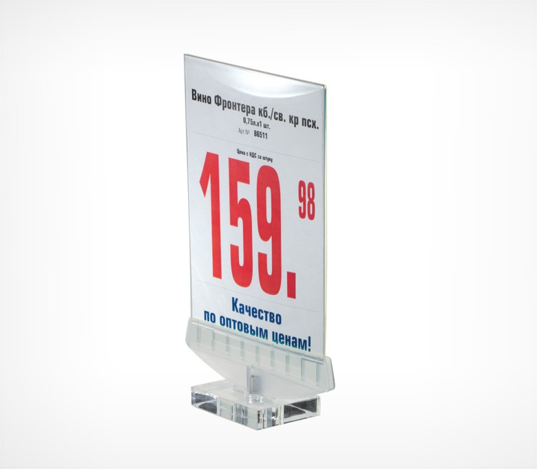 Удобный держатель кармана из акрила толщиной 1,5 мм. Используется с алюминиевыми трубками и держателями типа Clamp. Наиболее часто применим вместе с карман-протекторами из акрила А4 и А5, они делают ценник более аккуратным и эстетичным, по сравнению теми, которые размещены в пластиковых рамках.
