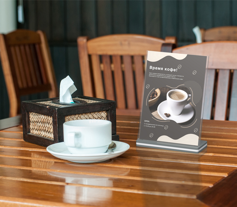 Менюхолдер SIGNHOLDER L-Stand — современная подставка с углом наклона 75°, обеспечивающая отличную видимость и привлекательную подачу информации. Верхняя загрузка делает замену материалов простой и быстрой, а пластиковое основание придаёт конструкции надёжность и устойчивость. Представлен в форматах A4 и A5. Применяется в кафе, магазинах, аптеках и салонах красоты.