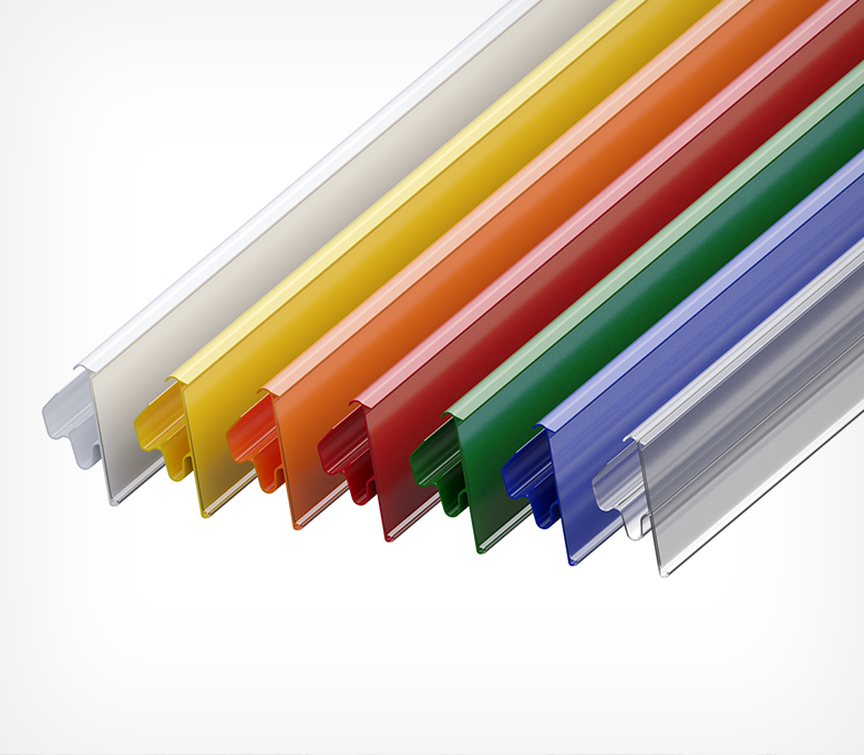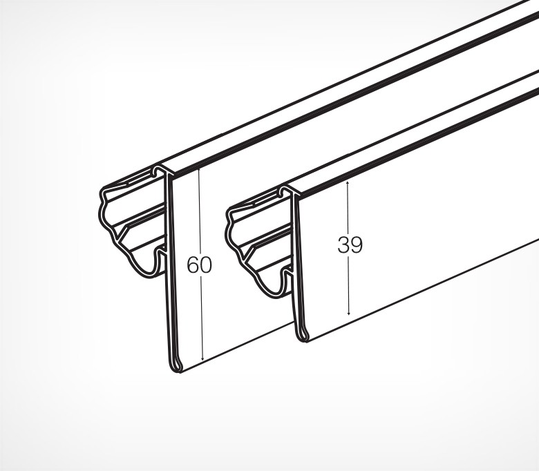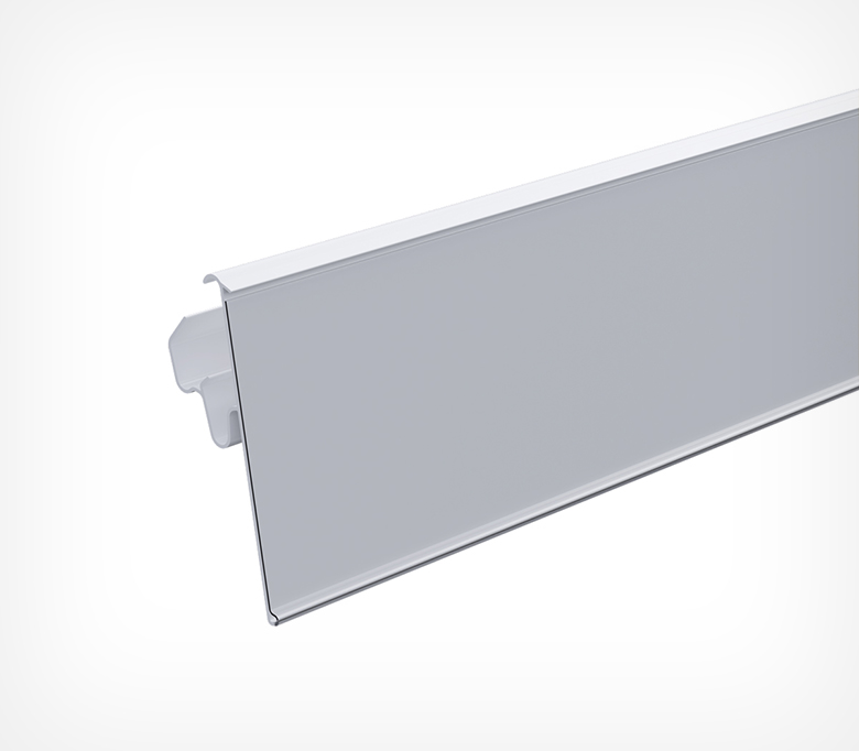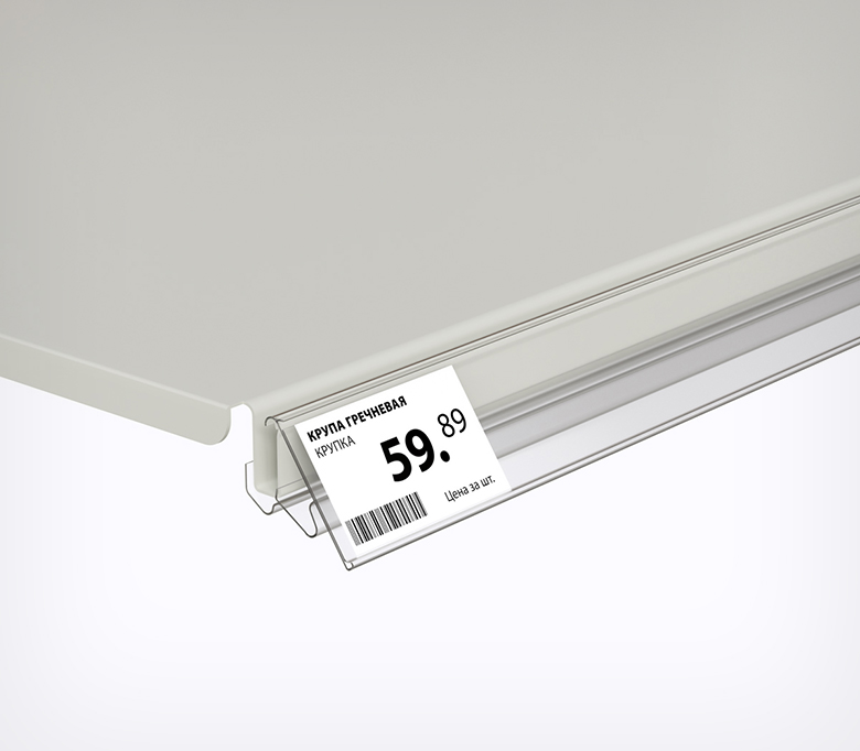 Полочный профиль, предназначенный для стеллажных систем Тего Металл, Русь, MAGO. Прочно фиксируется на полке, наклон относительно полки регулируется в двух положениях. Два варианта высоты ценника: 39 мм и 60 мм.