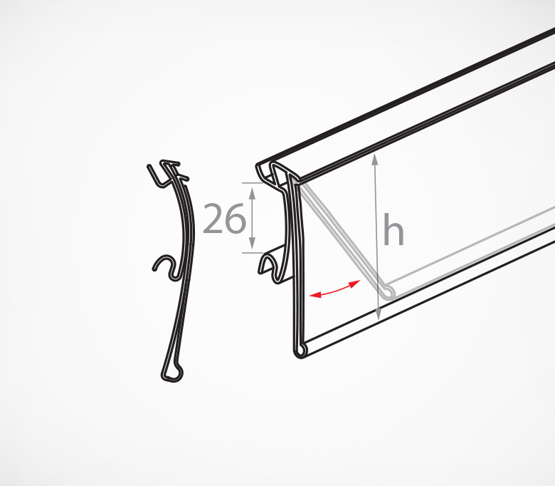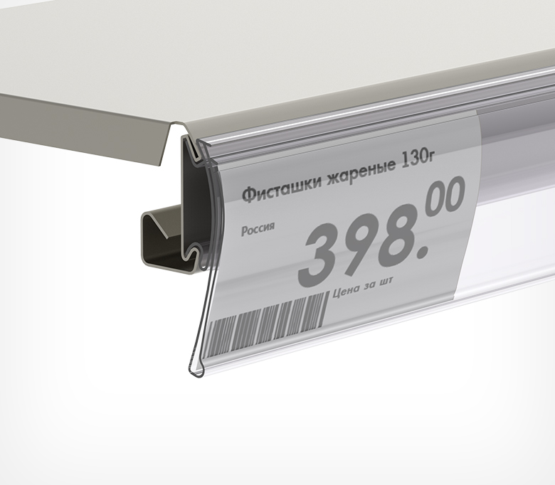Полочный профиль, предназначенный для стеллажных систем LaFortezza, КИФАТО. Закрепляется путем фиксации задней части на торец стеллажа, передняя часть профиля откидывается вверх. Для наклона ценника под углом можно использовать профиль ANGLE-SUPPORT-U. Рекомендовано для ценников и вкладышей высотой до 39 мм.
