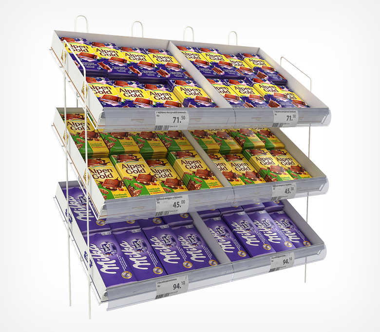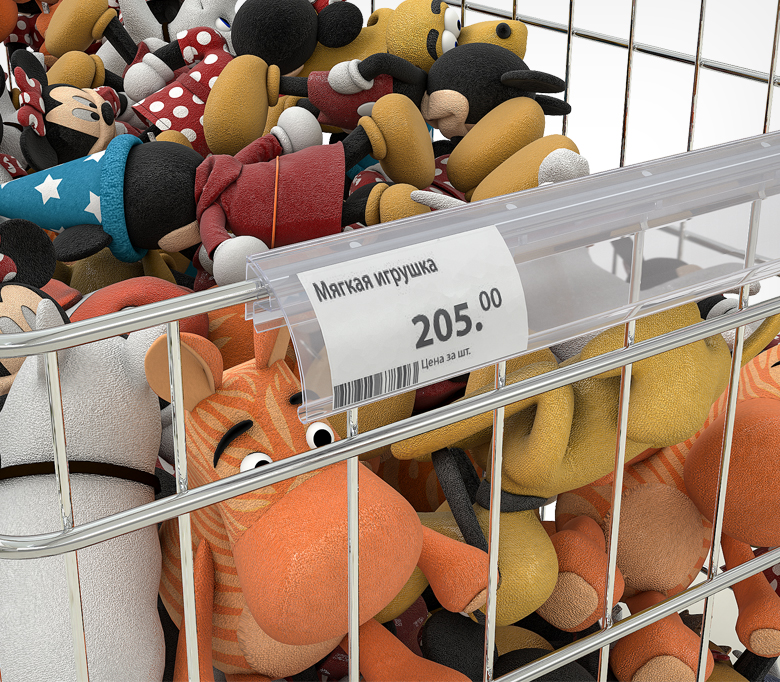 Ценникодержатель для крепления на сетчатые полки. Усовершенствованная модель для лучшей фиксации, особенно для использования в прикассовой зоне. Откидывается вверх при задевании.