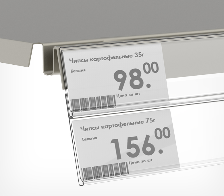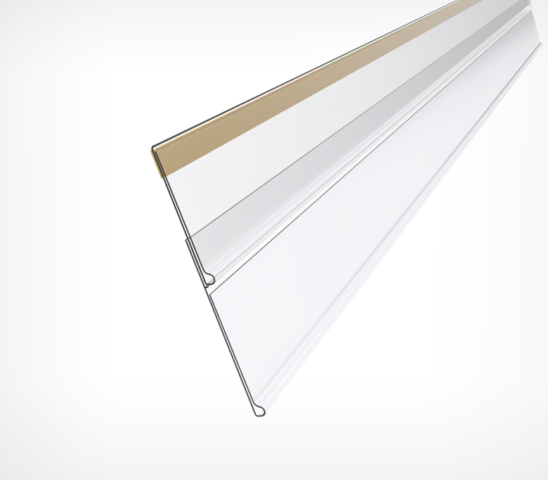 Ценникодержатель на скотче высотой 39 мм служит для создания двойных ценников. Крепится с помощью двусторонней клейкой основы под основной ценникодержатель, уже установленный на полку.