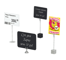 Везде: от супермаркетов, аптек, зоомагазинов и магазинов электроники, косметики, детских товаров и до бутиков одежды, обуви, кожгалантереи и сумок. Однако наибольшее распространение они получили в отделах «Гастрономия» и «Кулинария» продуктовых супермаркетов. Эти отделы невозможно представить без ценникодержателей на прищепках, держателей ценника на колбасу, а также ДЕЛИ с иголкой либо зажимом на гастроёмкость