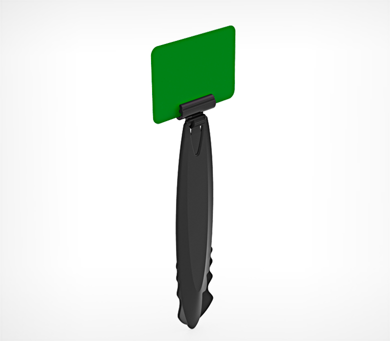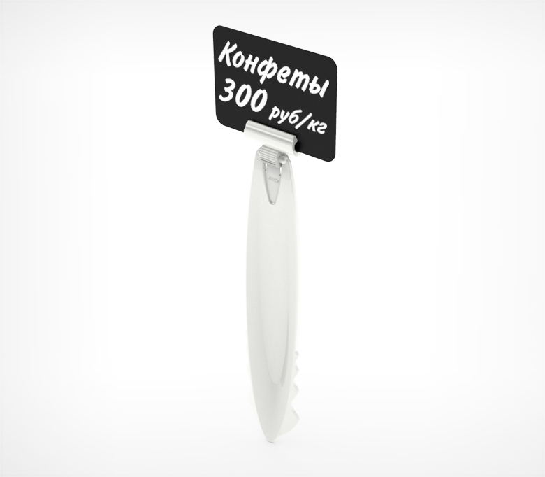 Сборный держатель ценника типа Дели для установки в подушку из льда, в основном используется при выкладке свежих морепродуктов, рыбы. Может применятся также при установке ценников в емкость с готовым блюдом, к примеру салатами на развес. Плоская лопаточка приспособлена под многократное перемещение, без проблем контактирует с низкими температурами и хорошо отмывается в процессе службы от грязи .