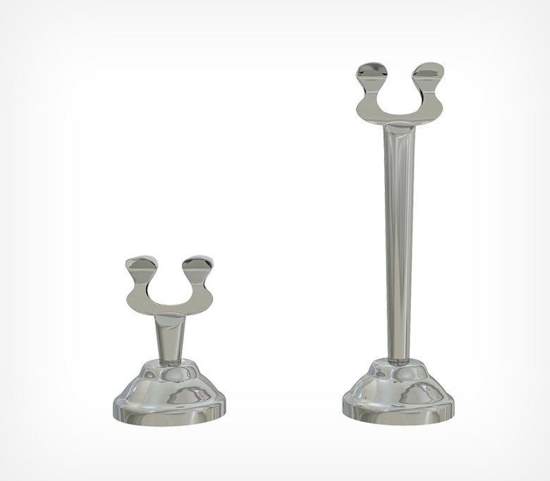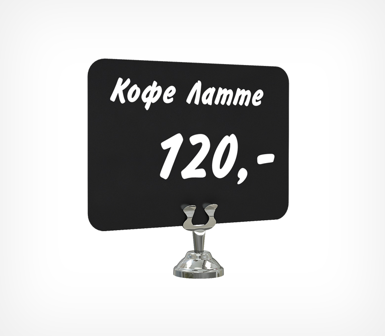 Компактный металлический держатель ценника на круглом утяжеленном основании для сегмента HoReCa. Позволяет установить вставки толщиной не более 2 мм, надежно фиксирует ценник благодаря зажиму в двух точках. Высота - 40 и 80 мм.