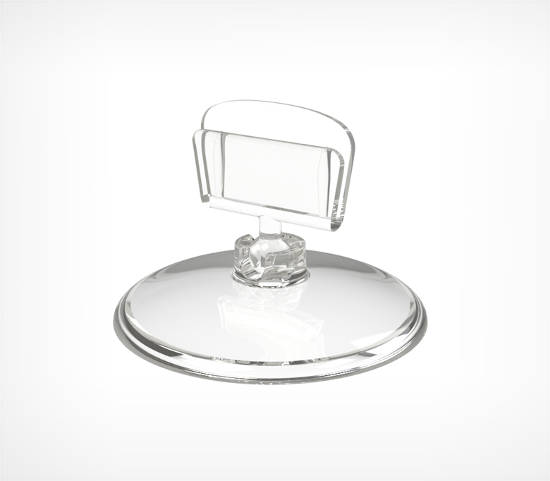 Круглая подставка. Может использоваться сразу с держателем ценника или удлиняться с помощью ножек для увеличения высоты.