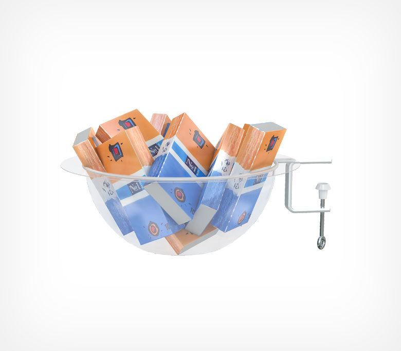Серия дисплеев BOWL позволяет осуществлять выкладку небольших товаров у кассы, на прилавке, а также около сопутствующих товаров ( при креплении дисплея на полку ). Простота в использовании и низкая цена делают этот дисплей популярным инструментом мерчендайзинга в аптеках и магазинах парфюмерии.