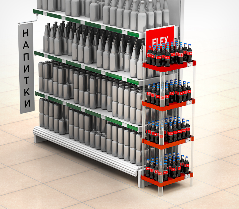 Данная модель позволяет организовать дополнительные выкладки, оформить рекламную акцию. Небольшой размер позволяет разместить конструкцию в магазинах малых форматов. Легкая конструкция из прочного пластика, простая сборка без специальных инструметов.