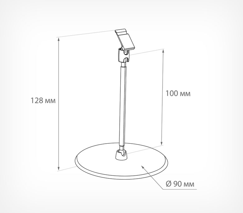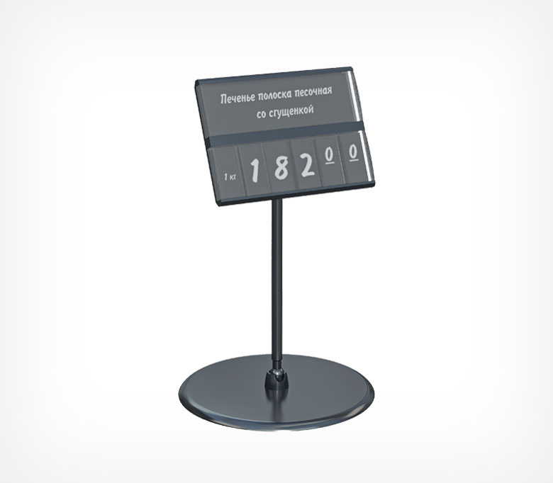 Держатель шарнирный на круглой подставке для кассеты цен. Имеет шарнирное соединение, благодаря которому возможно выставить кассету цен под любым углом.