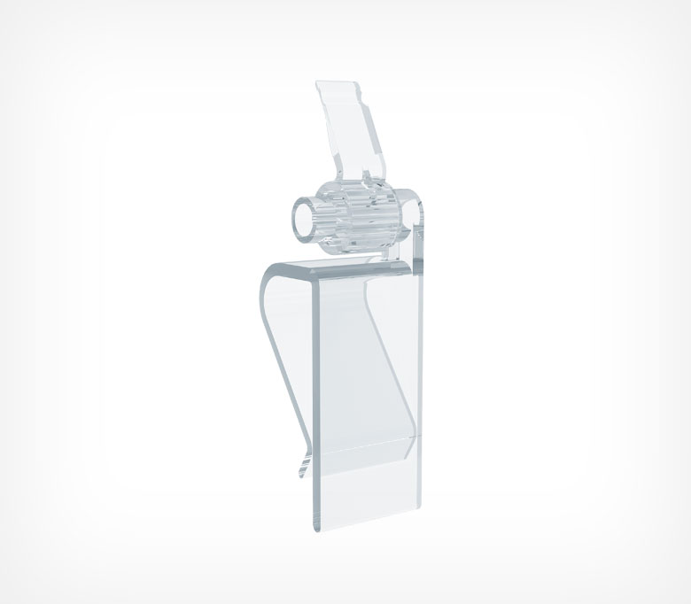 Прозрачная клипса-держатель с регулируемым углом позволяет закрепить кассету на любую ёмкость толщиной до 20 мм.