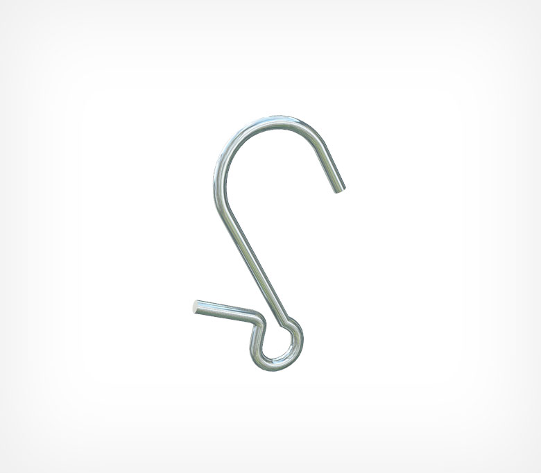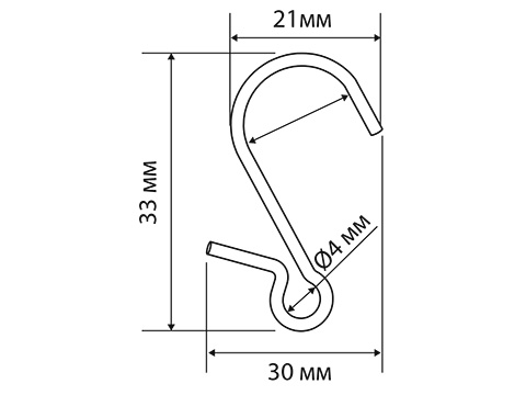 Металлический крепеж из нержавеющего металла для крепления подвесных страйп-лент. Длина изделия 33 мм. Загнутый нижний край крючка позволяет хорошо удерживать подвесную ленту.