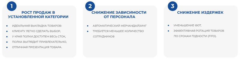меньше требуется ручного труда, меньше персонала – полка всегда остается в порядке!