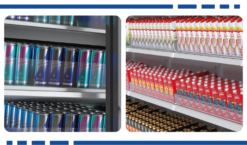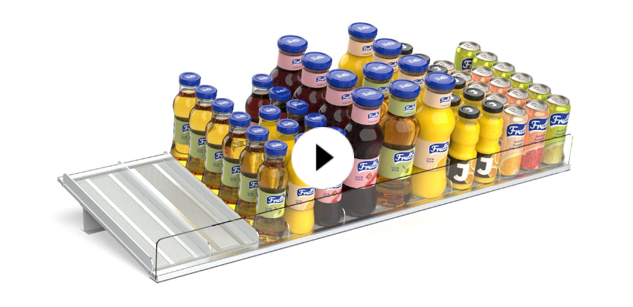 FORTA ROLLER автоматически перемещает товары к краю полки, облегчая процесс мерчандайзинга: