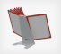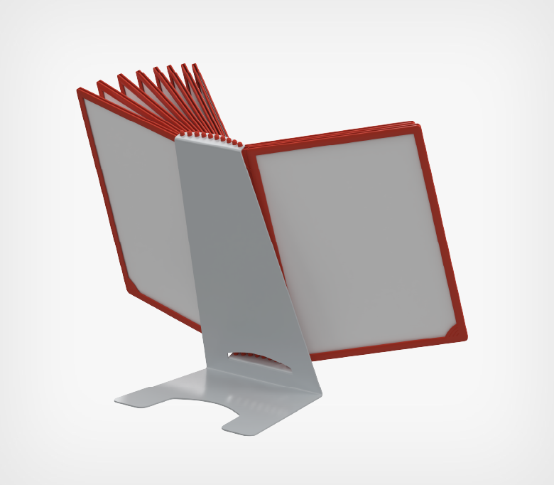 Настольный держатель информации с перекидными пластиковыми рамками Infoframe формата А4. Металлический держатель L-образной формы, на котором размещаются рамки, имеет угол наклона 70 градусов.Особенность системы связана с рамками Infoframe, которые дополнительно комплектуются карманами из ПВХ, выглядят более брутально и массивно, по сравнению с рамками системы Dataframe.
