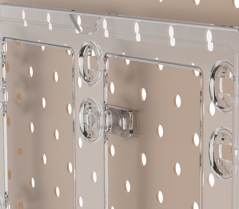 Пластиковый крепеж для установки рамок серии Мини на перфорацию с шагом 25 мм.