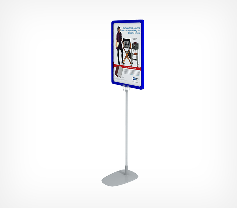 Алюминиевая трубка диаметром 9 мм. Выступает как специальный держатель для рамок формата А6, А5, А4, одновременно вставляется в пластиковую либо металлическую подставку, тем самым создавая устойчивую рекламную стойку.