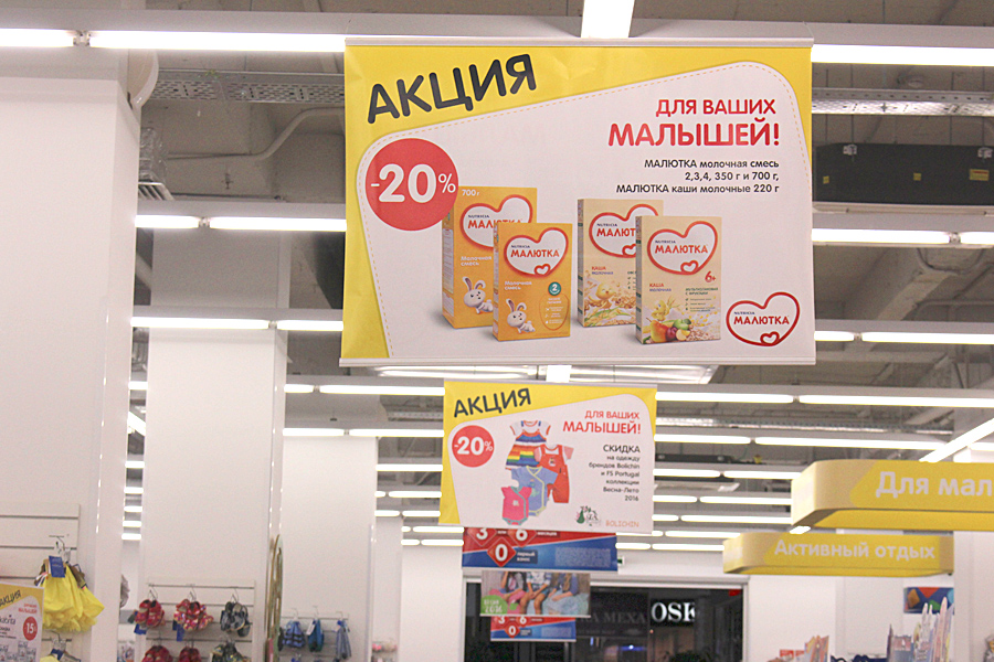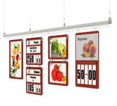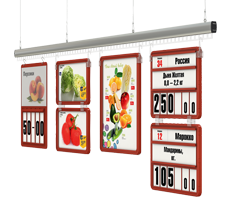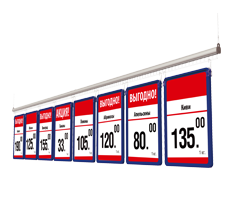 Подвесные системы позволяют использовать торговую площадь магазина максимально эффективно. Именно подвешивание профилей с информационными или рекламными плакатами может обеспечить удобное и быстрое информирование потребителей. Такие системы привлекают внимание за счёт своих размеров и ярких цветов.