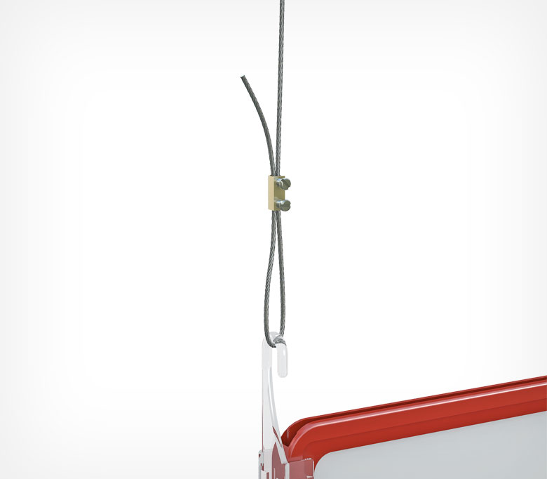 Подходит для использования как аксессуар для подвешивания подвесных алюминиевых систем, рамок, пластиковых профилей и прочих рекламных конструкций.
