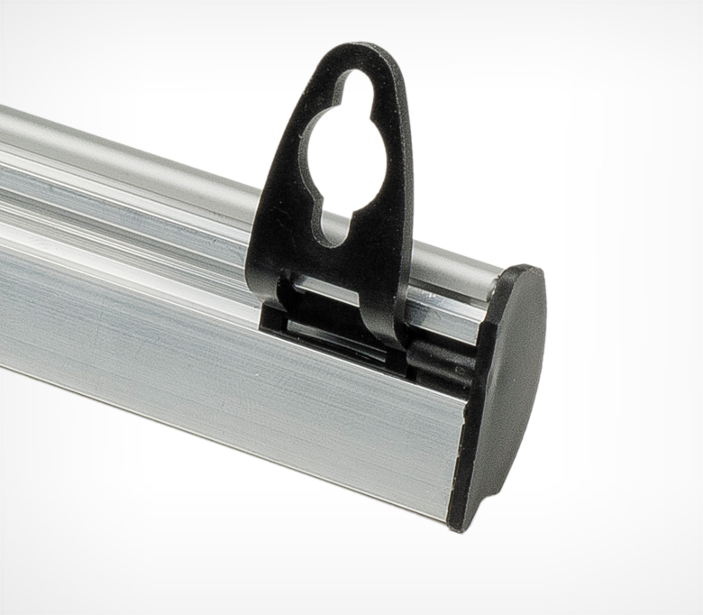 Для размещения рекламных носителей информации (плакаты, баннеры) в стеклянных витринах, торговых залах магазинов наибольшее распространение получил алюминиевый защелкивающийся профиль POSTERSNAPPER шириной 25 мм. Профиль укомплектован заглушками с двух сторон и двумя петлями для его подвешивания. Клик-профиль позволяет быстро и легко вставить баннер либо плакат. Стандартные длины: 600 мм, 1000 мм, 1200 мм.