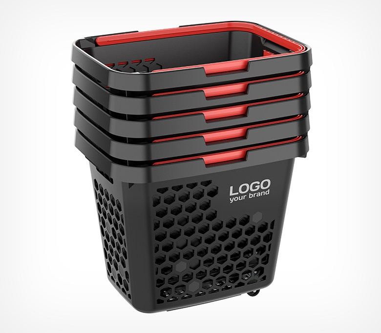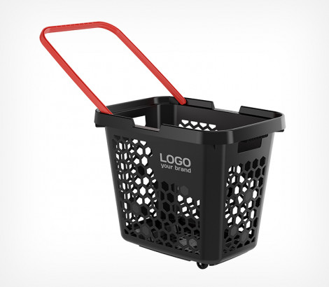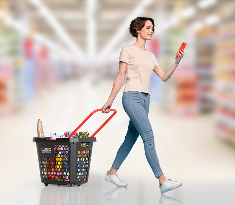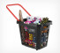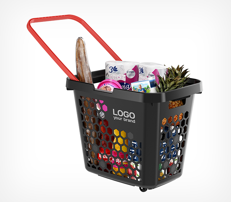 Тележка покупательская пластиковая, объёмом 80 литров. Удобная, прочная и манёвренная корзина-тележка выполнена в стильном чёрном цвете, при этом цвет ручек (красный, салатовый, синий, оранжевый, чёрный) можно выбрать для создания дополнительной уникальности вашей корзины. Так же для удобства они фиксируются.