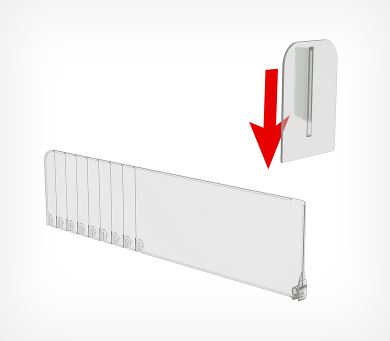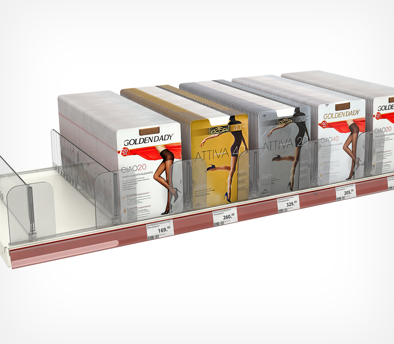 Пластиковый обламывающийся разделитель с расширенным передним ограничителем. Позволяет лучше удерживать товар на полке.