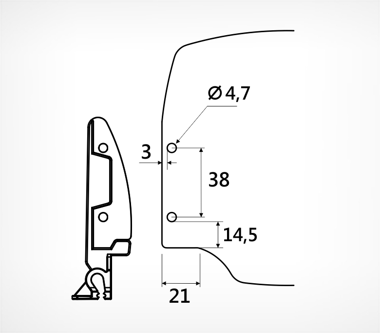 Держатель стоппера. Используется с профилем PRO30 для дополнительного выделения продукта.Крепится на T-RAIL.