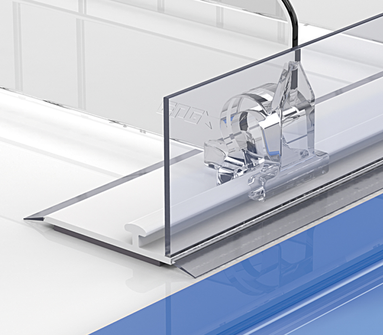 Комплексное решение – L-образный ограничитель товара высотой 30 мм с Т-образным профилем для крепления разделителей к полке. Не дает товару выпадать с полочного пространства, позволяет сохранить порядок на торговом пространстве и упрощает работу по сортировке и добавлению новых позиций на стеллаж. Устанавливается на металлические полки за счет магнитной ленты, нанесенной на нижнюю поверхность профиля.