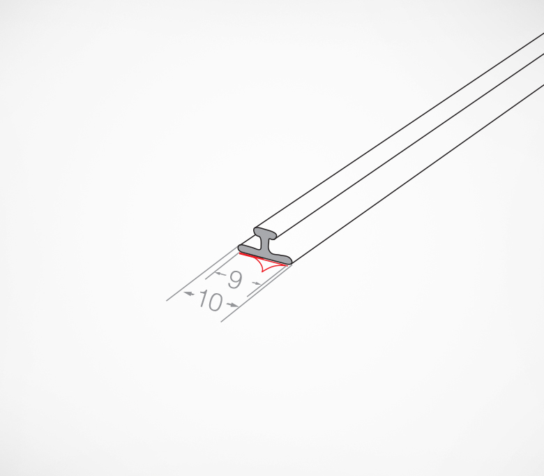 Т-образный прозрачный профиль шириной 10 мм служит для фиксации на полке систем разделителей и толкателей. Может быть установлен за счет клейкой основы на металлические полки, столы и стойки.