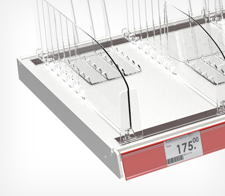 Профиль для крепления разделителей Т-образный, высота ограничения 30 мм. Используется на металлических полках, крепится за счёт магнитной основы.