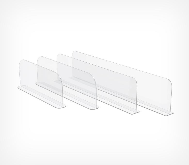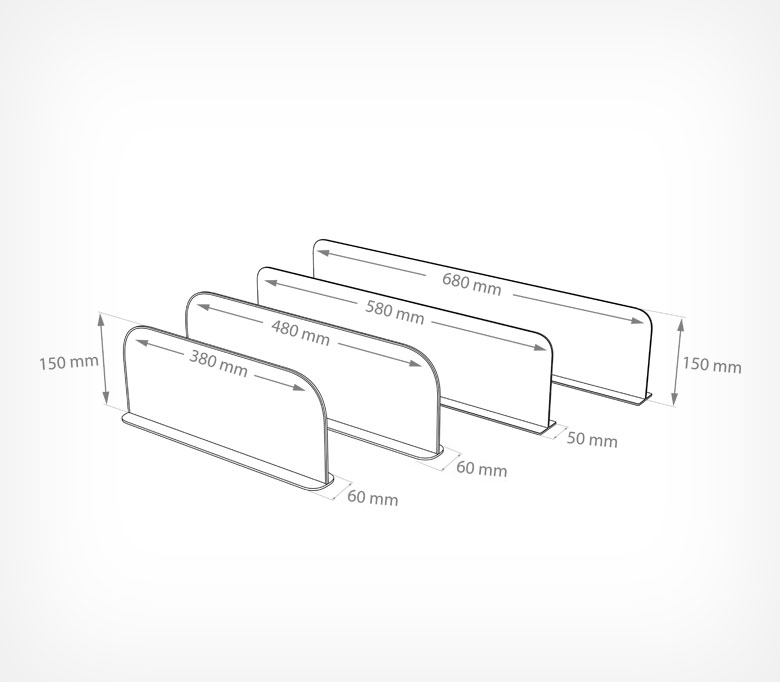 Т-образный разделитель товара высотой 150 мм из ударопрочного пластика легко устанавливается на полке без дополнительных профилей. Фиксация происходит за счет товара, который укладывается на Т-основание шириной 50 мм. Удобен в использовании, быстро переставляется в нужное место.