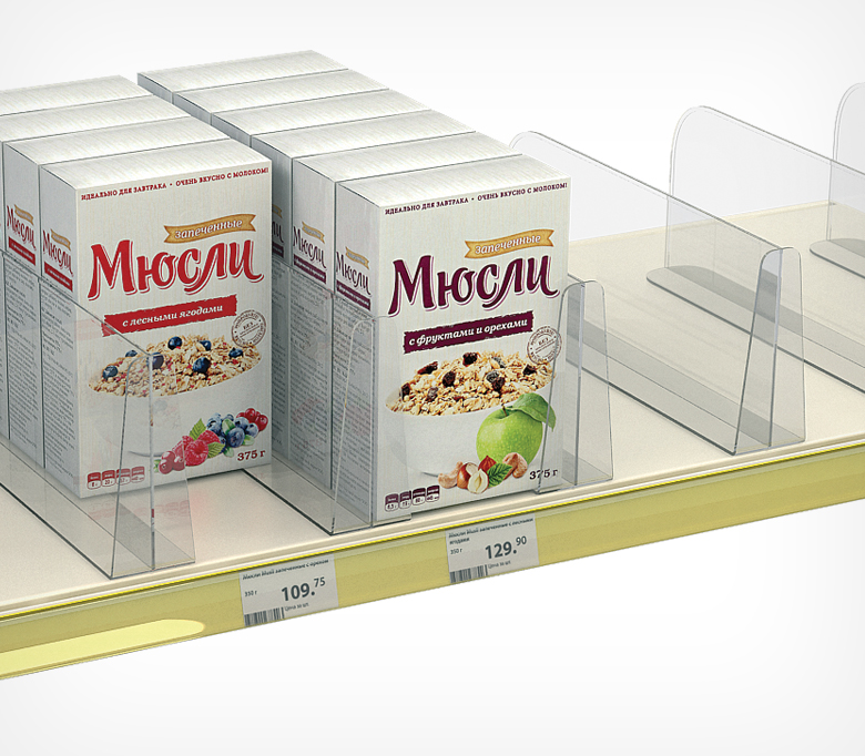 Разделитель на Т-основании с передним ограничителем. Позволяет удерживать товар на полке за счёт ограничения.