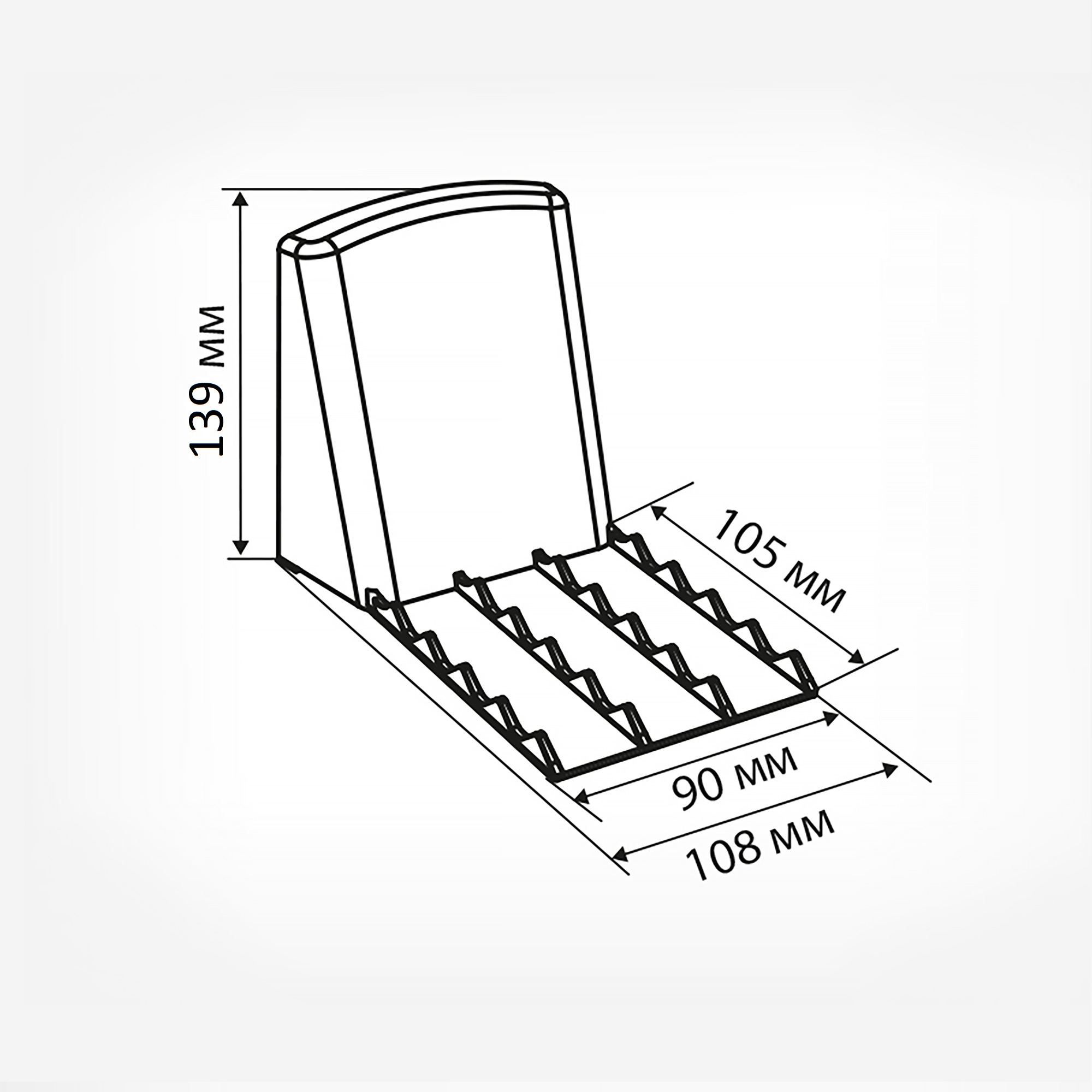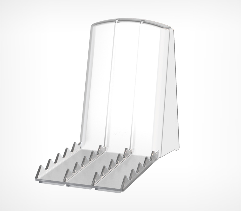 Подставка из пластика для выкладки небольших товаров. Может быть использована как в книжных магазинах, супермаркетах бытовой техники и электроники, так и продовольственных магазинах при выкладке товаров в картонной упаковке среднего размера .