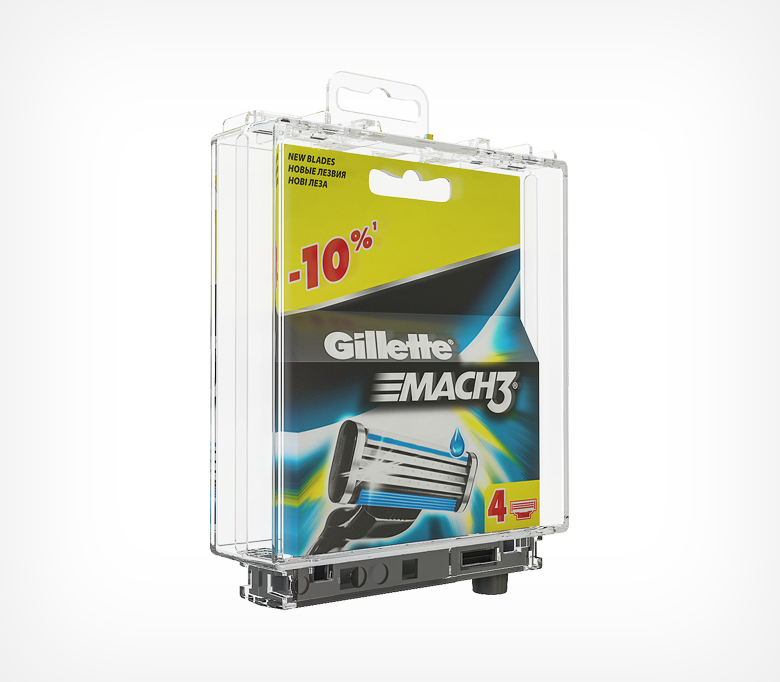 Противокражный бокс предназначен для защиты небольших упаковок с товарами (сменные лезвия для бритв, батарейки и т.д.). Возможность размещения бокса с продукцию на крючке благодаря петле для подвешивания.