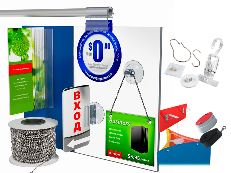 Магазинам любой направленности, которые без помощи агентств размещают баннеры, плакаты, подвесные системы, ценникодержатели, также не обойтись без рекламной фурнитуры.