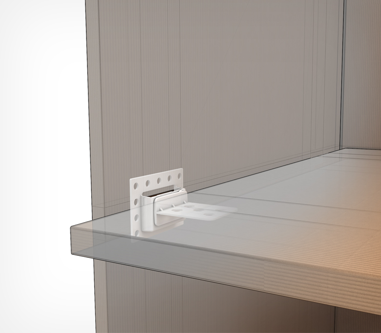 Держатель картонной полки служит для создания съемных полок в картонных дисплеях, упрощает процесс сборки. Горизонтальная конфигурация держателя полки позволяет увеличить размер полки, что облегчает доступ к товару и увеличивает обзор товарной полки.