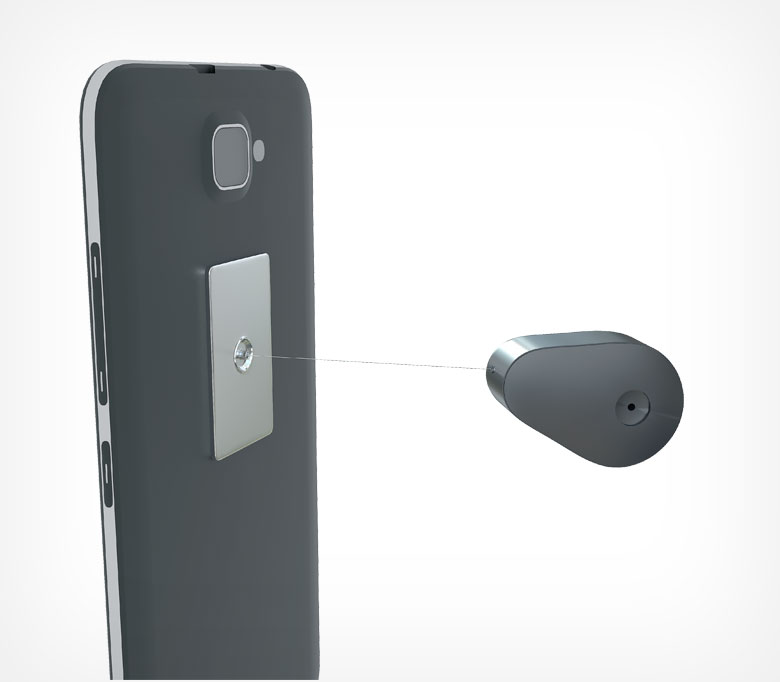 Для демонстрации образцов продукции используют специальное компактное устройство - ретрактор. Имеет каплевидную форму, внутри свернут стальной трос, который разворачивается при натягивании. Закрепить данное устройство можно несколькими способами: на скотч, винт либо шуруп.
