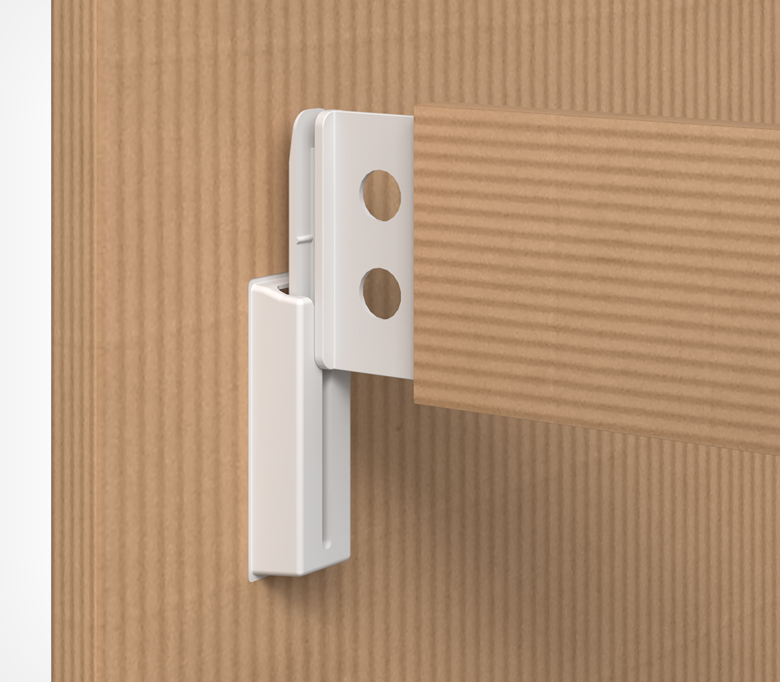 Специальный пластиковый крепеж для картона, благодаря которому можно быстро собрать и разобрать картонный стенд.