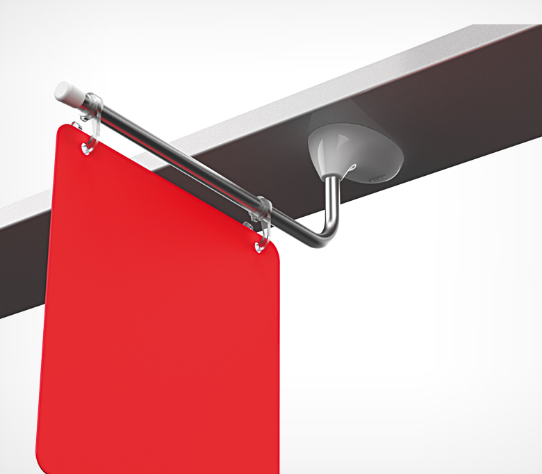Магнитный держатель вывески с изогнутой трубкой диаметром 9 мм. Для крепления информации используются два подвижных крючка.