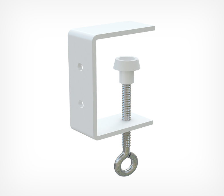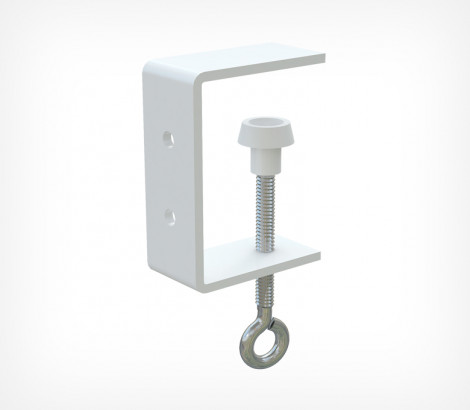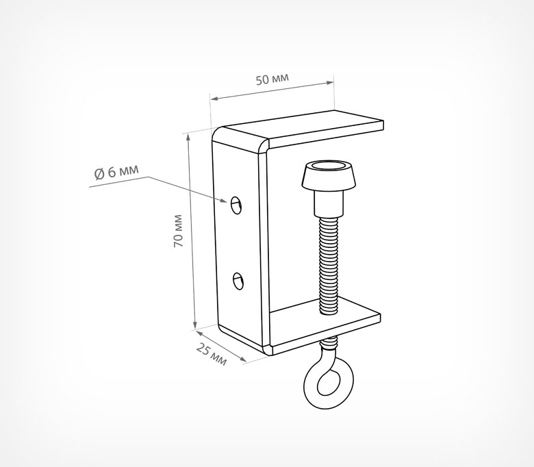 Держатель вывески на струбцине имеет 2 отверстия, применяется для крепления конструкции к полкам толщиной не более 40 мм. Используют для вывесок и прочих конструкций из металла, пластика и картона.