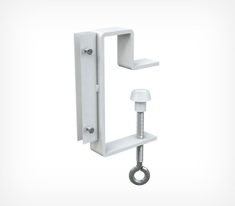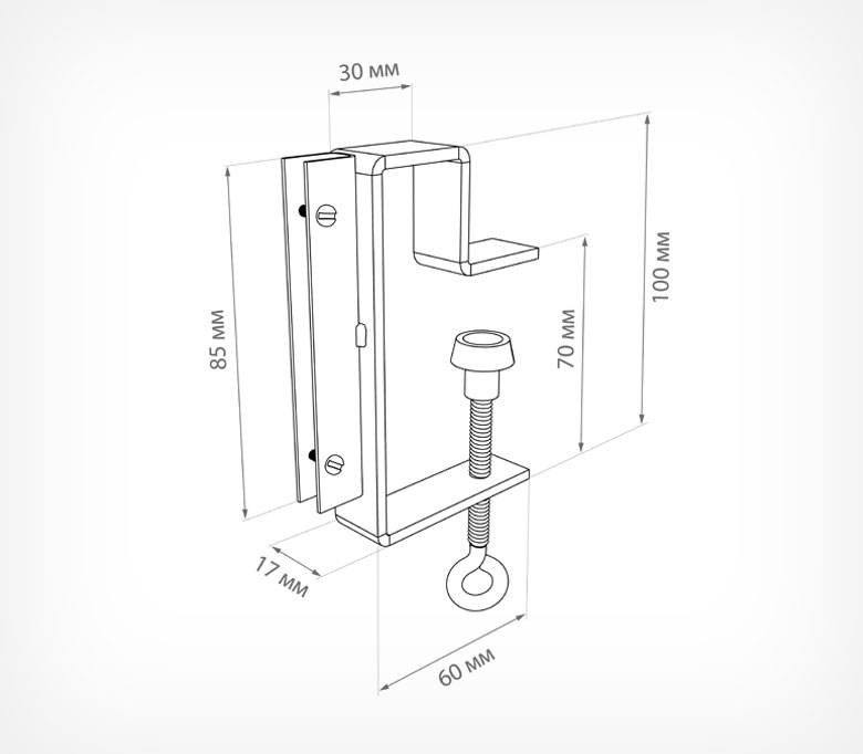Струбцина с металлическим держателем для информации. Может использоваться со вставкой толщиной до 5 мм. Крепится к полке до 40 мм.